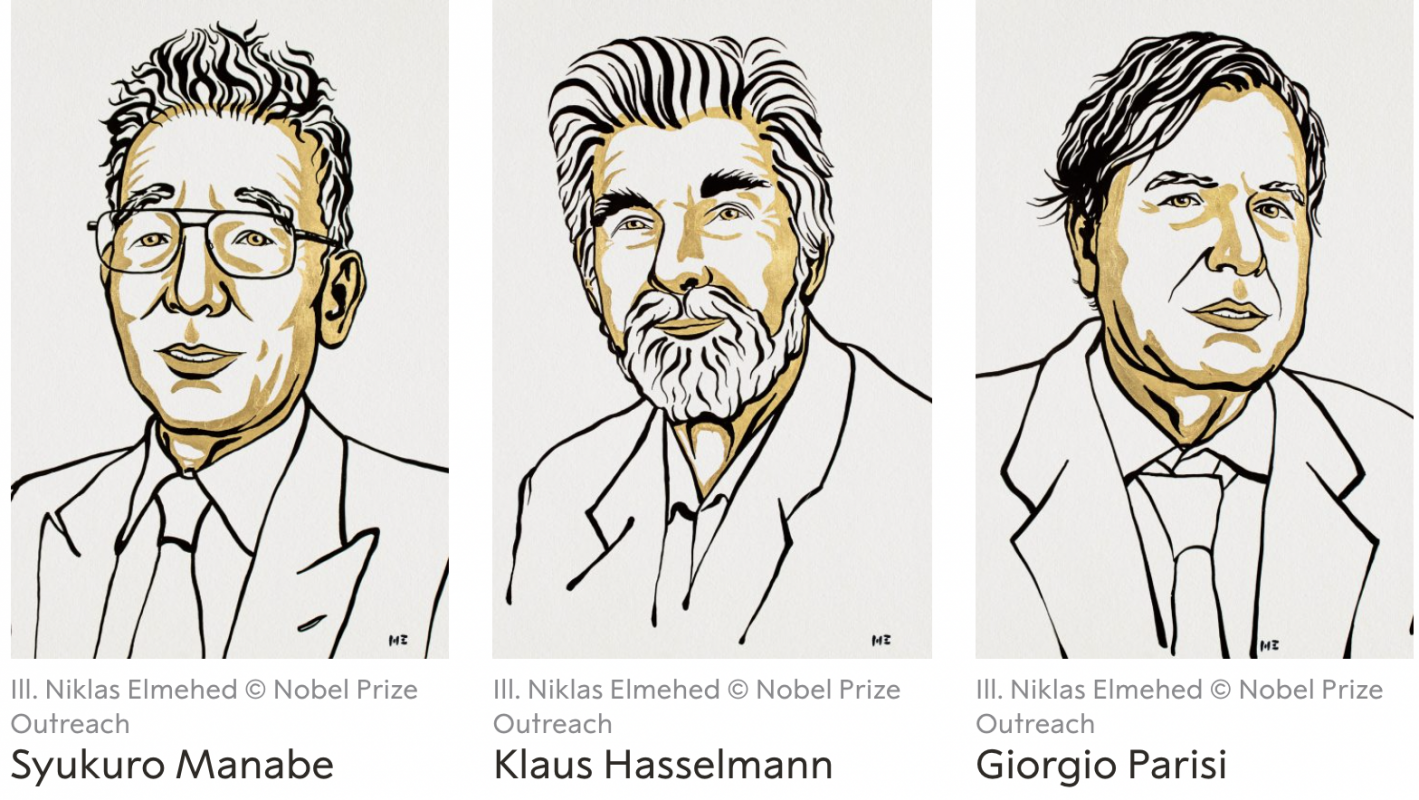 Japanese-born American Syukuro Manabe, German Klaus Hasselmann, and Italian Giorgio Parisi were awarded the prize for studying humanity’s role in climate change and the study of finding order in natural or man-made chaos.