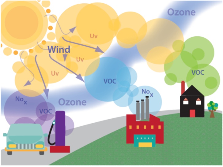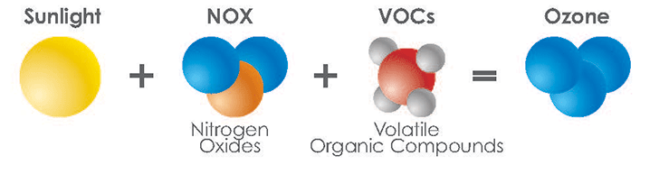 Some VOCs are harmful when inhaled directly, such as the ones released from paints and bleaches. There are VOCs that react with sunlight and nitrogen oxide in the atmosphere to form ozone and fine particulate matter. When this ozone combines with fine particles, it produces smog.