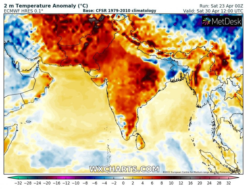 Last year India practically skipped the entire spring season, due to its large and intense period of heatwaves. Heatwaves were 200 days long, or about five times as long as those of 2021.