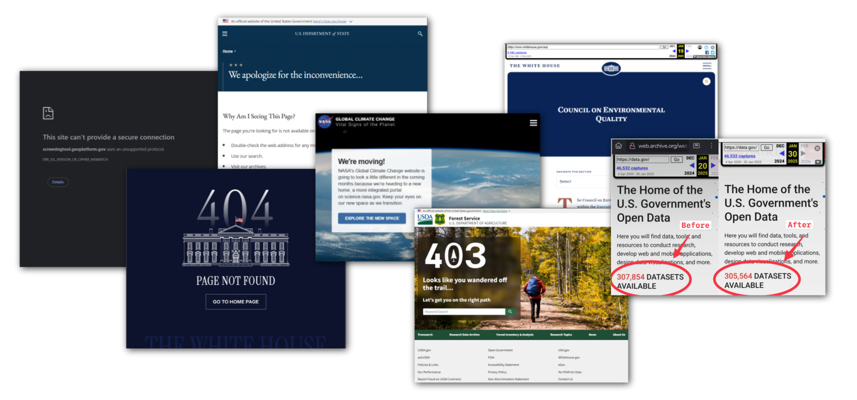 Additionally, many government websites have been modified or removed. Access to databases containing crucial climate change and health-related information has been restricted, with communities and universities desperately trying to preserve data.